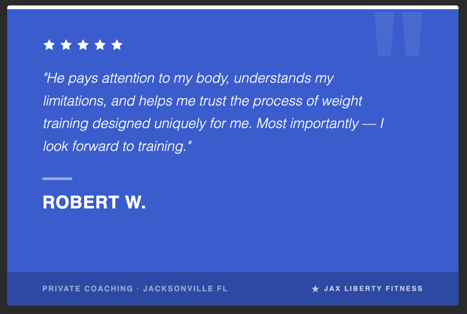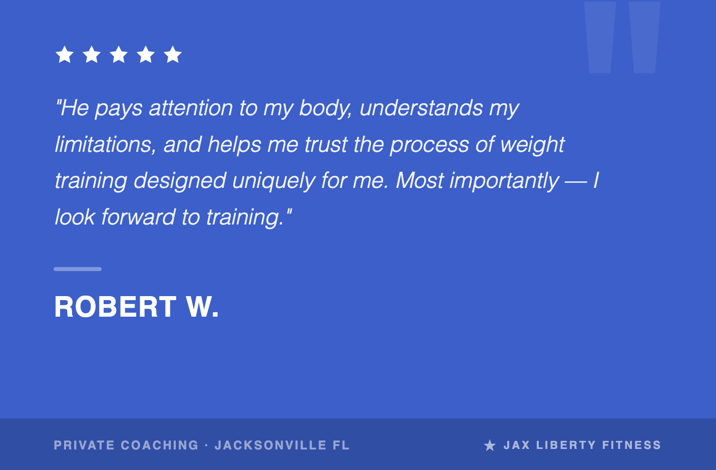 Because when you lift heavy, you live bigger. Private barbell coaching for everyday adults — beginners, people over 50, and anyone ready to start for real. Avondale, Jacksonville FL.